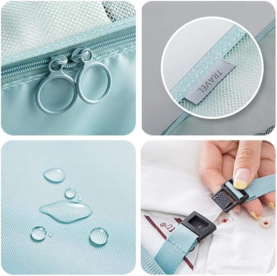 El diseño plegable y ligero de estas bolsas facilita su almacenamiento cuando no están en uso. Las cremalleras de doble sentido y los anillos de cierre aseguran que cada bolsa se mantenga ajustada y firme, evitando que tus pertenencias se muevan y se arruguen. Las correas integradas dentro de las bolsas aseguran tu ropa, evitando arrugas y desorganización.