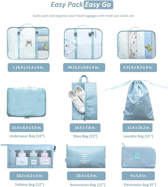 Convierte una maleta desorganizada en un espacio perfectamente estructurado con este kit. Mantén separados los diferentes tipos de artículos para evitar arrugas y daños, y accede fácilmente a tus pertenencias sin tener que revolver toda la maleta. Perfecto para viajes largos, campamentos, viajes de negocios o cualquier tipo de viaje.