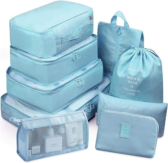 🧳 Un kit de 8 bolsas de viaje para mantener tu ropa, zapatos y accesorios perfectamente ordenados. 🧳